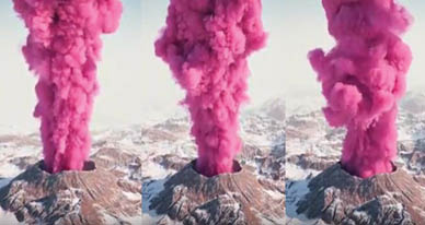 أدخنة تخرج من أحد البراكين الثائرة بلون وردي غريب