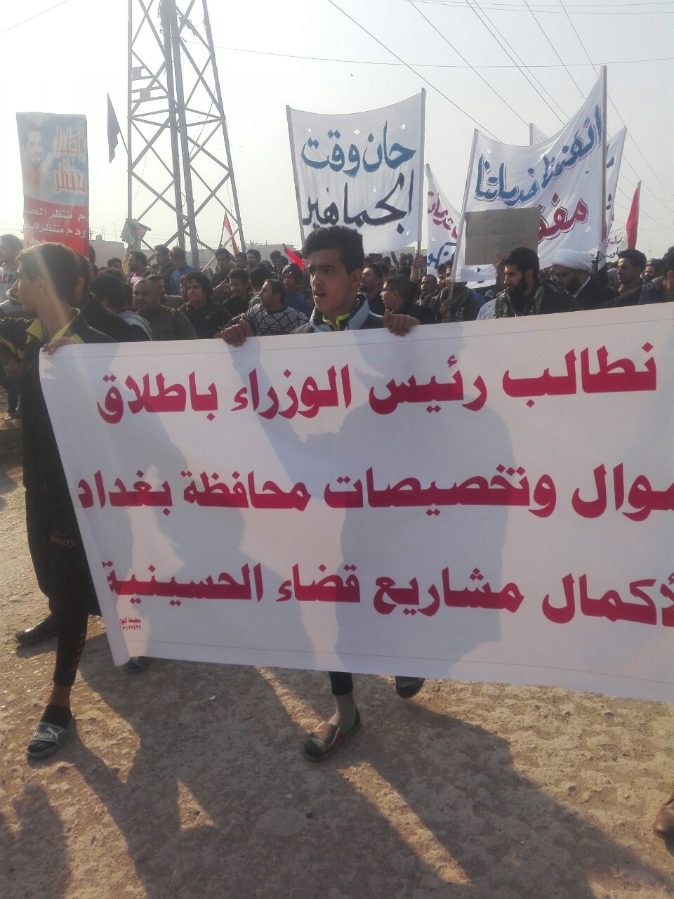 ودعا المتظاهرون رئيس الوزراء حيدر العبادي, الى زيارة المدينة للإطلاع على الواقع المزري الذي تعيشه. ووضع المتظاهرون مهلة سبعة ايام, للاستجابة الى مطالبهم, بتحسين البنى التحتية لمدينتهم, مهددين باغلاق الشوارع, واعلان اعتصام مفتوح, في حال عدم الاستجابة لذلك.
