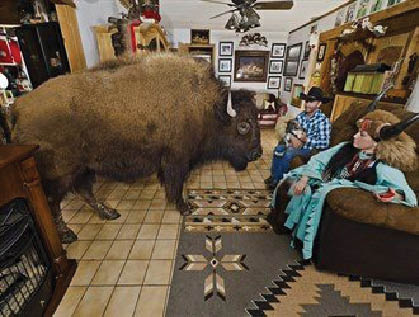 يرغب البعض باقتناء القطط والكلاب وغيرها من الحيوانات الأليفة داخل المنزل، لكن زوجين أمريكيين قررا استئناس جاموس ضخم وتربيته داخل منزلهما بولاية تكساس, ويملك الجاموس الذي يصل وزنه إلى نحو 1200 كيلوغرام كامل الحرية للتنقل داخل منزل روني (60 عاماً) وشيرون بريدج (44 عاماً)، ولديه غرفة خاصة به لمتابعة أفلام الأكشن، وحتى أنه يتناول طعام الفطور من على طاولة المطبخ، ويعد الزوجان الجاموس جزءاً مهماً من العائلة، حتى أنه كان إشبينهما في حفل الزفاف قبل عقد من الزمن. وكان الزوجان قد باعا قطيعهما من الجواميس قبل نحو 13 عاماً، لكنهما قررا الاحتفاظ بأحدها لتربيته في منزلهما. وتقول شيرون: (كانت فكرتي أن نحضر الجاموس إلى داخل المنزل عندما كان صغيراً، فهو يعيش مرة واحدة، وأردت أن نفعل له شيئاً مختلفاً، وقمنا بتخصيص غرفة له يتابع فيها برامج التلفزيون، لكن كان علينا إزالة بعض قطع الأثاث من الغرفة حتى تكون مناسبة له). وكان روني قد اضطر إلى بيع قطيع الجواميس بعد أن فقد البصر في عينه اليسرى، وأصبح غير قادر على الاعتناء بالحيوانات الضخمة، وبات الجاموس الذي أطلقا عليه اسم (وايلد ثينغ) في منتصف العمر تقريباً، وقد كوّن صداقة حميمة مع الذئاب التي يحتفظ بها الزوجان أيضاً في المنزل.