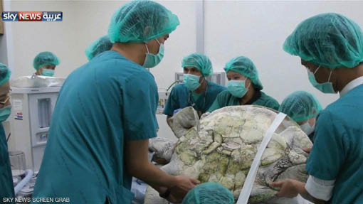 استخرج أطباء بيطريون من تايلاند 915 عملة معدنية من بطن سلحفاة بحرية، ظلت تبتلع العملات التي تلقى في بركتها طلبا للحظ السعيد، مما حد في نهاية المطاف من قدرتها على الحركة. وأزيلت خمسة كيلوغرامات من العملات والأشياء الأخرى من بطن السلحفاة البحرية، التي تبلغ من العمر 25 عاما، وأطلق عليها اسم (أومسين) أي “حصالة” باللغة التايلاندية. أما السلحفاة نفسها فتزن 59 كيلوغراما.وكانت السلحفاة، التي تعيش في محمية بمدينة سريراتشا في إقليم تشونبوري شرقي العاصمة بانكوك، تجد صعوبة في السباحة بشكل طبيعي بسبب الوزن. وقال الأطباء البيطريون إنهم يعتقدون أن عملية استخراج العملات، التي استغرقت سبع ساعات، هي أول عملية جراحية من نوعها في العالم.