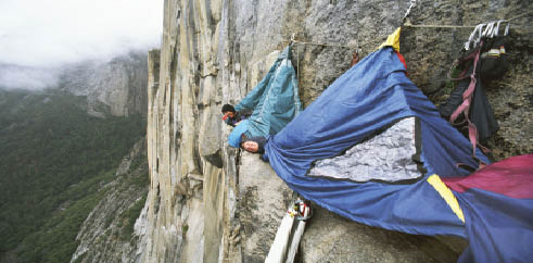 شماعات كليف: في حديقة يوسمايت الوطنية في ولاية كاليفورنيا، للمستكشفين المتهورين الذين يمكنهم التخييم في مثل هذه المنحدرات ومن ثم النوم في منتصف الطريق في خيام «بيفواك» المكيفة خصيصًا.