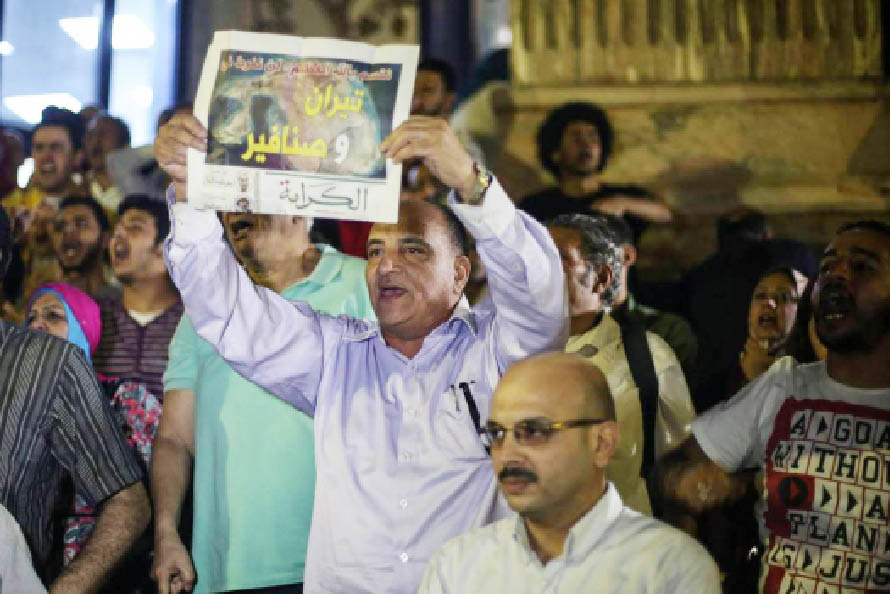 وما بدا، رضوخاً برلمانياً للسلطة السياسية بالتصويت على الاتفاقية، قابله ردّ فعل غاضب في نقابة الصحافيين، التي استعاد درجها الخارجي ذكريات «ثورة 25 يناير»، خاصة بعدما اقتحمته قوات الأمن في محاولة لفضّ اعتصام المئات من الصحافيين والناشطين وشخصيات مثل حمدين صباحي وخالد علي. الأمر الذي أدى إلى أن تعيش النقابة يوماً كاملاً تحت (الحصار).