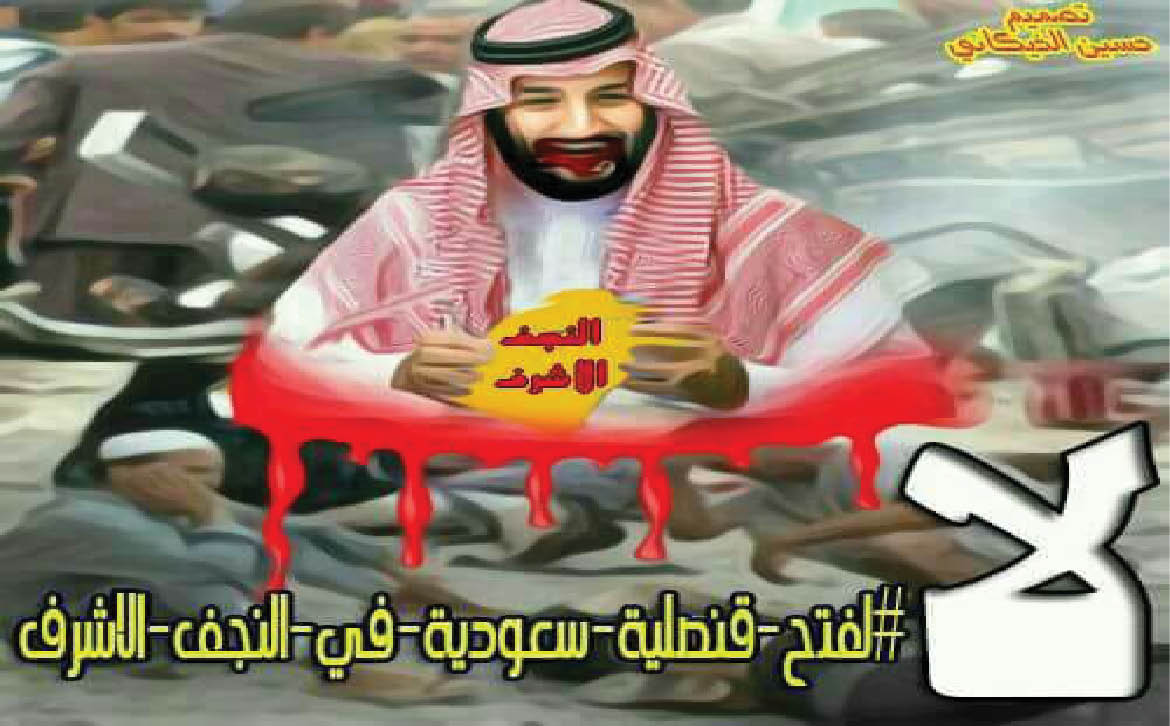 أطلق ناشطون على مواقع التواصل الاجتماعي «فيس بوك» حملة رفضوا من خلالها فتح قنصلية للسعودية في محافظة النجف الاشرف, مبينين بان الرياض ليست لديها حسن نية تجاه العراق, داعين الى ضرورة ان تسكت السعودية منابرها التي تصدح يومياً بتكفير الشيعة قبل ان تفتتح القنصلية في عمق المحافظة, وأكد الناشطون بان أهالي النجف يرفضون وبشدة فتح تلك القنصلية, مذكرين بجرائم آل سعود التي ارتكبت في العراق منذ التغيير الى اليوم, والهجمات الارهابية المتكررة التي كانت تتم ضد المدنيين العزل في جميع مدن العراق, والتي تُمول بالمال السعودي وتُغذى بالفتاوى الوهابية التي تصدرها المؤسسة الدينية في المملكة.