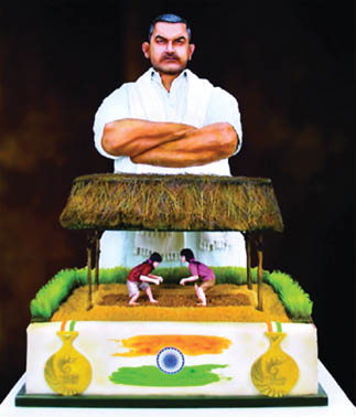 وذكر البيان أن الكعكة تكفي لنحو 250 شخصاً، وأنه تم تصميم هيكل الممثل عامر خان الذي يلعب في الفيلم شخصية المصارع ماهافير سينغ فوغات وابنتيه غيتا وبابيتا من عجينة فندان السكر. ونوه إلى أن السيدة طلبت أيضاً أن يتم تزيين الكعكة التي تجسد واحداً من أشهر مشاهد الفيلم الذي يشرف فيه «عامر خان» على تدريب ابنتيه على فنون المصارعة تمهيداً لتمثيل الهند في الأولمبياد، بنماذج طبق الأصل عن الميداليات الذهبية التي فازت بها غيتا في 2010. وذكر المخبز في بيانه أنه قام قبل البدء بعملية تصميم الكعكة بوضع ترتيبات خاصة لفريق العمل، لتمكينهم من مشاهدة الفيلم، بهدف معايشة التجربة نفسها، وبالتالي إنجاز الكعكة وفق المواصفات المطلوبة. وذكر أن رئيس الطهاة وفريقه عكفوا لأكثر من أسبوع على دراسة شخصية الممثل عامر خان ليتمكنوا من ترجمتها خلال عملية نحت الشخصية.