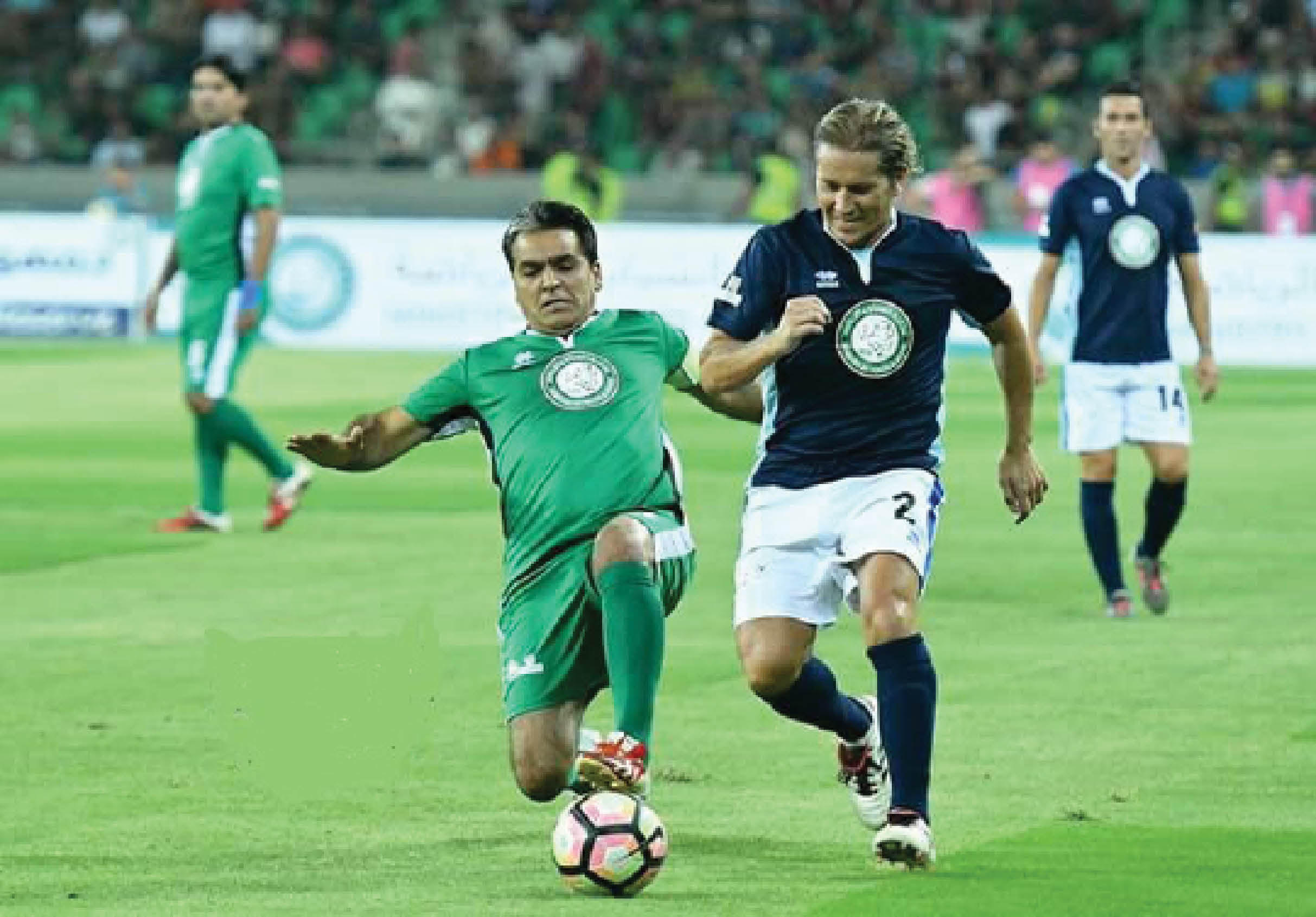 الى ذلك حقق منتخب اساطير العالم لكرة القدم، السبت، الفوز على منتخب نجوم العراق السابقين بخمسة اهداف مقابل أربعة، في مباراة احتفالية جرت بينهما على ملعب مدينة البصرة الرياضية، في اطار حملة رفع الحظر كليا عن اقامة المباريات في الملاعب العراقية.