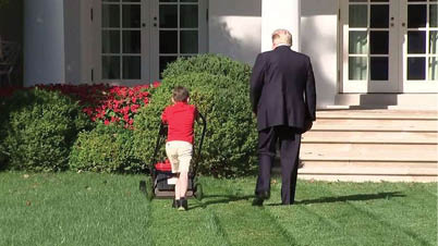 ظهر في البيت الأبيض عامل جديد لقص الأعشاب؛ (فرانك جياشيو) البالغ من العمر 11 عاما.. لقد كتب القاصر رسالة الى الرئيس الأمريكي قال فيها إنه يحب جز العشب في الحدائق وبهذا الشكل يحصل على بعض المال عن طريق مساعدة الجيران في هذا المجال في مسقط رأسه بمدينة فولس تشيرتش في فيرجينيا. وطلب الفتى من دونالد ترامب السماح له بقص العشب في حديقة البيت الأبيض ولم يمانع الرئيس الأمريكي بل وقف شخصياً يراقب فرانك وهو يعمل بجد ومثابرة خلال قيادته لعربة جز العشب. بعد ذلك، دعا ترامب الصبي إلى المكتب البيضاوي ورافقه في جولة إطلاعية في البيت الأبيض ثم نشر ترامب الصور في التويتر وأرفق ذلك برسالة شكر. من جانبه أرسل فرانك فاتورة الحساب للرئيس ترامب – 8 دولارات وهو عادة ما يتلقاه لقاء عمله هذا.