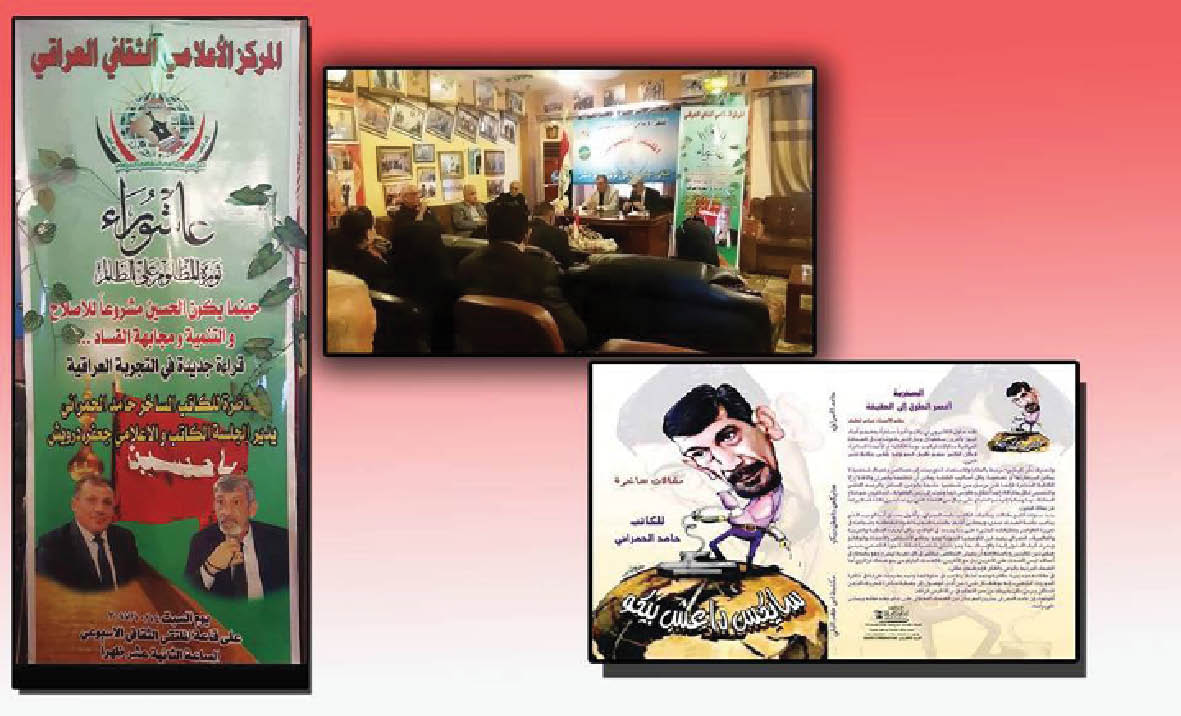 خصص المركز الاعلامي الثقافي العراقي في ملتقاه الاسبوعي في مقره وسط شارع السعدون ببغداد لاستضافة الاعلامي والكاتب الساخر حامد الحمراني لإلقاء محاضرة بعنوان (حينما يكون الحسين مشروعا للإصلاح والتنمية ومجابهة الفساد) ادارها الاعلامي والكاتب جعفر درويش وحضرها أعضاء المركز ونخبة من المثقفين والأكاديميين وتخللتها مداخلات للحاضرين، وتضمنت توزيع كتاب الحمراني (سايكس داعش بيكو)، فيما تم تكريم الحمراني ودرويش بميداليات الابداع من قبل نائب رئيس المركز الاستاذ منذر الحجامي ومسؤول العلاقات بالمركز الدكتور زاهر الرومي. خاص – المراقب العراقي