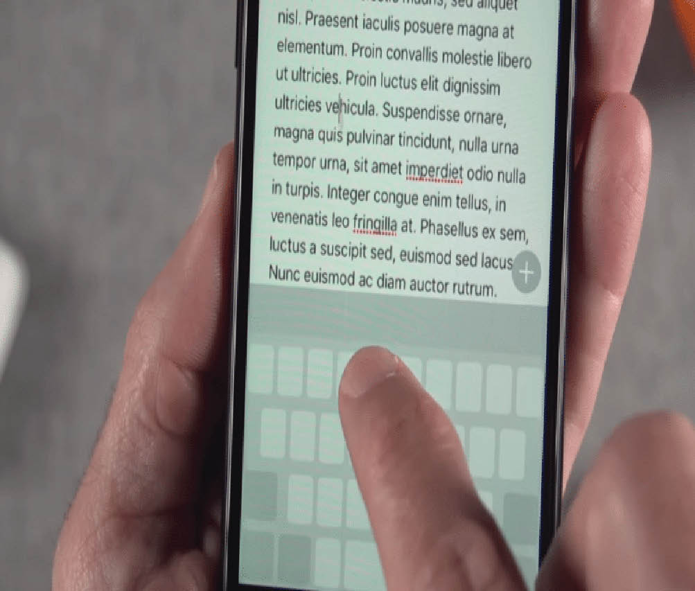 على مدى تاريخه الممتد لعشر سنوات، شهد هاتف آيفون من آبل العديد من التحسينات لجعل الكتابة عليه تجربة جيدة. ومع ذلك لا يزال تحرير النص يسبب بعض المعاناة للمستخدمين. ولمعالجة هذا، توفر هواتف آيفون التي تدعم ميزة “ثري دي تاتش” 3D Touch (وهي آيفون 6إس، وآيفون 6إس بلس، وآيفون 7، وآيفون 7 بلس) ميزة خفية تحول لوحة المفاتيح إلى فأرة لتحريك المؤشر بسرعة ودقة. وتمتلك لوحة المفاتيح الافتراضية لنظام آي أو إس على أي هاتف آيفون مع شاشة “ثري دي تاتش” لوحة تتبع مخفية. ولتنشيطها يتعيّن على المستخدم الضغط بقوة مع الاستمرار على أي مفتاح حتى يرى أن المفاتيح أصبحت فارغة ويشعر برد فعل لمسي. حينها تتحول لوحة المفاتيح إلى لوحة تتبع ويمكن تمرير الأصبع حول الشاشة ليتحرك المؤشر وفقًا لحركته. وإذا رغب المستخدم في تحديد نص، فيمكنه ذلك من خلال تخفيف الضغط الذي يطبقه على الشاشة دون إبعاده، ثم الضغط بقوة مرة أخرى لبدء تحديد النص. وبغض النظر عن أي إصدار لهاتف آيفون، هناك طريقتان لتحريك المؤشر لتعديل النصوص. الطريقة الأولى هي أن ينقر المستخدم على الشاشة حيث يريد وضع المؤشر. وهذا يعمل بشكل مريح، لكنه ليس دقيقًا دائما. أما الطريقة الثانية فهي الضغط مع الاستمرار على الشاشة لإظهار العدسة المكبرة. وهذا يعمل بشكل أفضل مقارنة بالنقر، ولكن في بعض الأحيان يمكن أن يحجب الأصبع المؤشر.